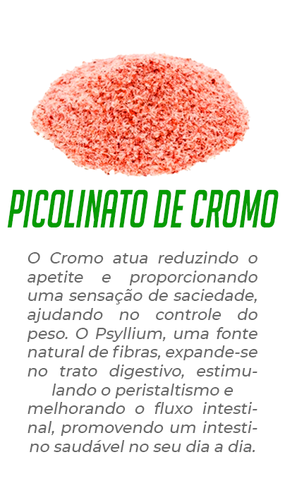 O kit emagrecedor oferece uma fórmula avançada que combina Cromo e L-Carnitina, elevando seu metabolismo e saciedade. Quer perder peso de forma natural e segura, conquistando mais energia e cofiança para viver bem?